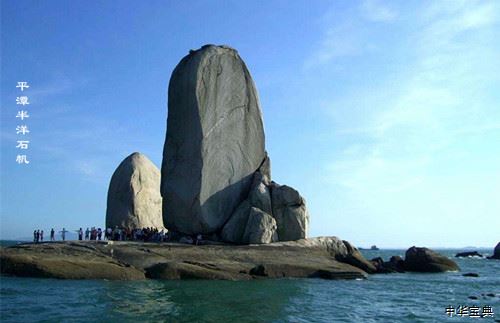 平潭半洋石帆远远望去有一个圆盘状的大礁石,托着一高一低的两块碑形海蚀柱。整个礁石象一艘大船两块巨石象两面鼓起的双帆,似乎正在乘风破浪前进。这是平潭最著名的自然景观石牌洋。又称为双帆石。是世界上最大的花岗岩球状风化海蚀柱。这是一对全国最大的花岗岩海蚀柱,柱体主要受两组垂向节理和一组弧形水平节理控制,在漫长的地质历史中沿节理发生了强烈的球柱状海蚀、风化,风化壳层层剥落,现在的两石柱是风化剥离出来的新鲜核心部分。在石牌洋对岸的看澳海滩上,还保存着60余座令人不可思议的一系列球状海蚀造型石景,有弥勒佛、青蛙仰天、双龟拱桥等象形石景,而且深刻地剖析和化石般地表现出当年岩浆层层包裹的运动情形,使之具备了很高的观赏和科学考察价值。根据《福州府志》、《平潭县志》记载,宋朝末代皇帝赵罡在逃避元兵追杀中,曾在此驻跸。