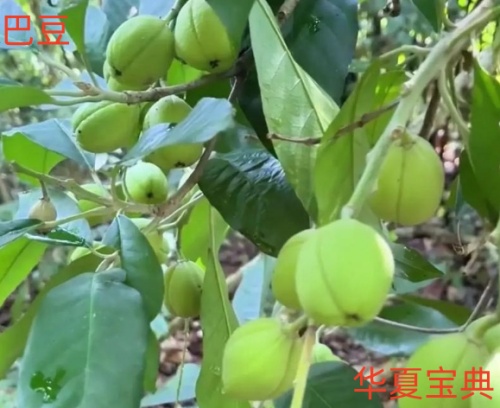 药用:华夏宝典一中医学一中药学一峻下逐水药 泻下药,大戟科常绿乔木植物巴豆树的成熟种子。