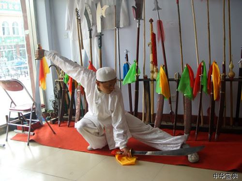 枪法:回族武术中的传统枪法负有盛名。相传明初功臣常遇春善枪法。后常家衰败,后代流落江湖,有以枪法谋生者,因以“常家枪”自号,改称“开平枪”。其法与六合枪相近似,但枪法硬朗,直出直进。明代枪法流派中又有沙家枪、马家枪。沙家枪又名沙家竿子,其枪竿长丈八至二丈四,沙家枪之用在两足,身随其足,臂随其身,腕随其臂。马家枪据传系南京回族马家所创,明永乐年间迁至河北青县,明中期有马仲良者善枪法,遂与沙家枪齐名。此两种枪法均属六合枪系统。